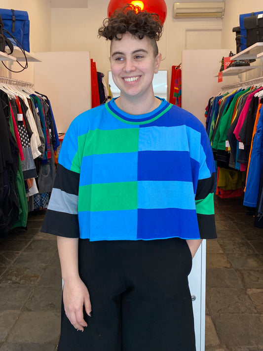 Block Stripe Knit Crop Turquoise