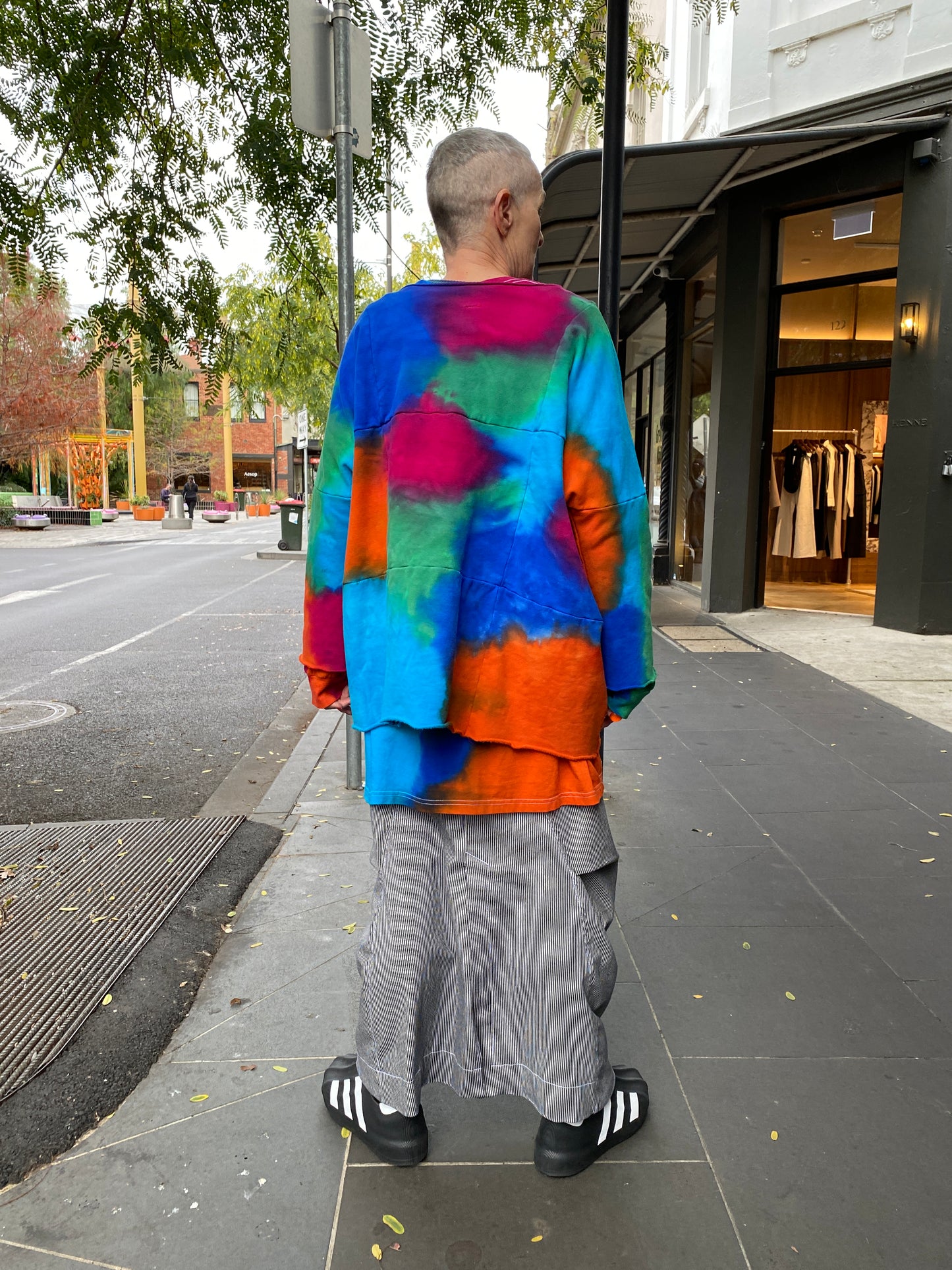 Each garment will vary in colour & positioning due to hand dying process.