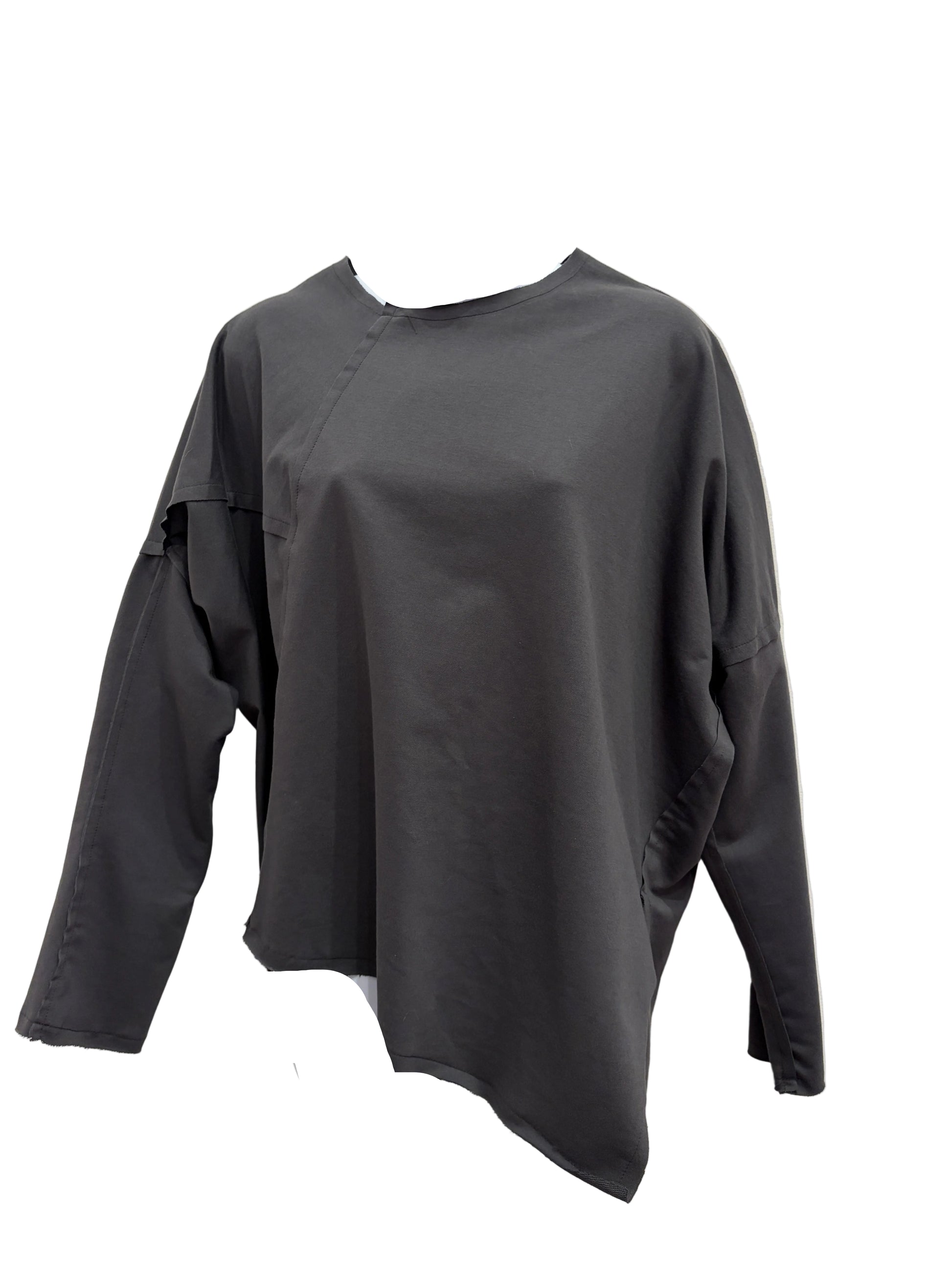 Stylish, asymetrical patched top.